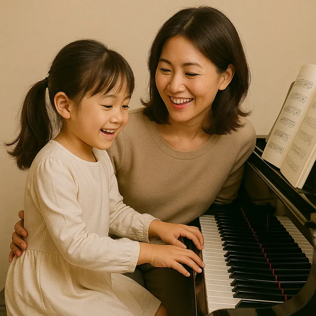 母親:小さいときに習っていた先生なので、安心して自分の子供も教えてもらっています。そして、私もレッスン再開しました。